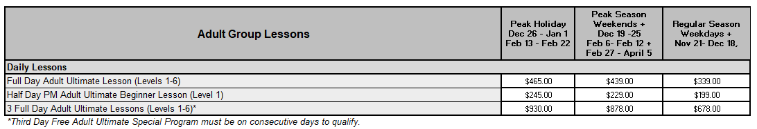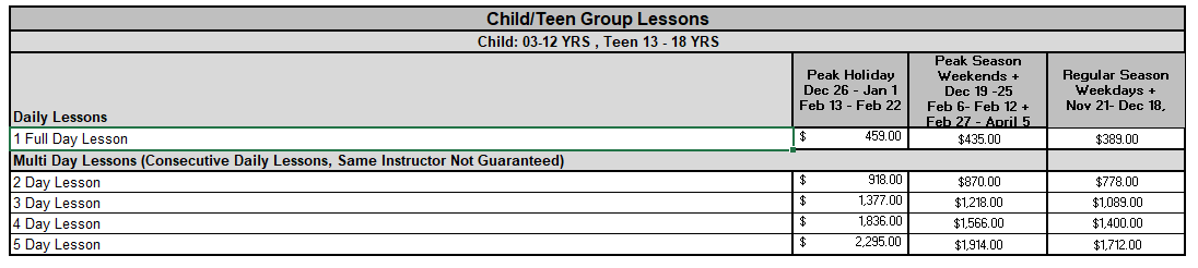 All lessons are non-inclusive of lift tickets, which can be purchased separately at a discounted rate when paired with a lesson. Please select YES on the booking form when asked if you need a lift ticket to qualify for this option.
